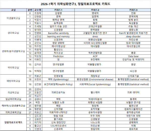학사 | 2026-1학기 의예과 2학년 의학심화연구3,정밀의료프로젝트 희망조사 안내