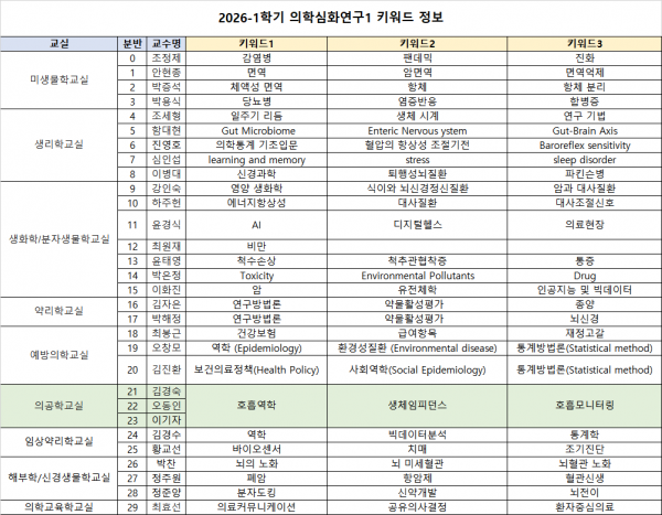 학사 | 2026-1학기 의예과 1학년(신입생, 복학생) 의학심화연구1 희망조사 안내