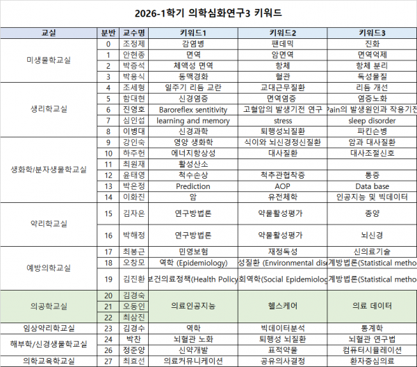 학사 | 2026-1학기 의예과 2학년 의학심화연구3 희망조사 안내