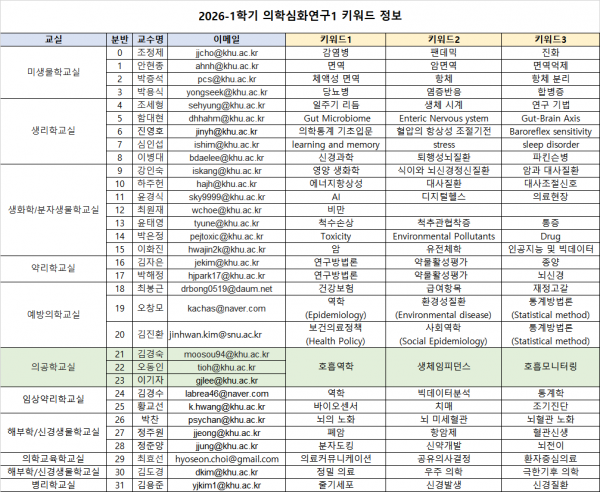 학사 | 2026-1학기 의예과 1학년(신입생,복학생,23학번 이상) 의학심화연구1 희망조사 안내